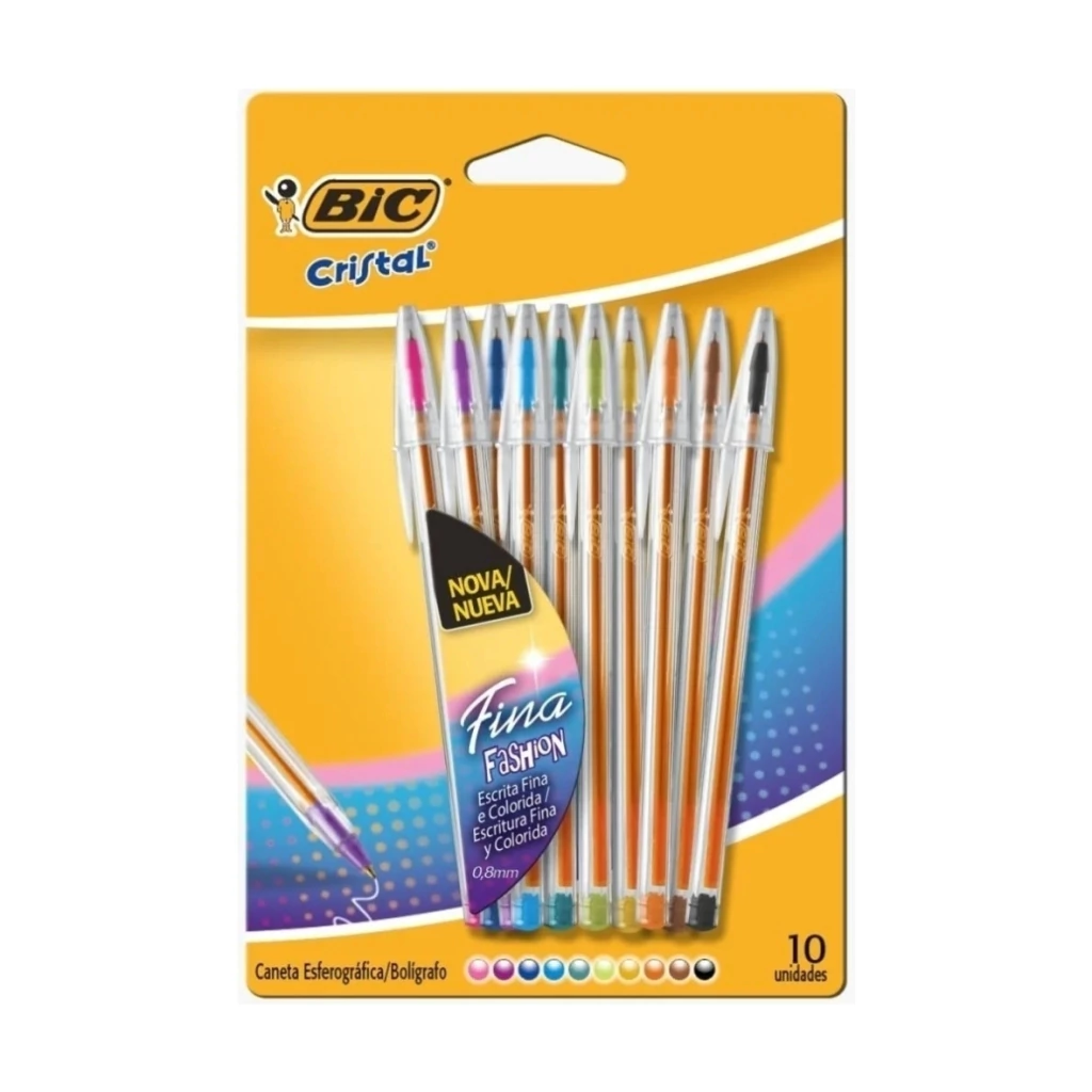 KIT CANETA ESFEROGRÁFICA CRISTAL 0.8 10 ou 4 CORES BIC